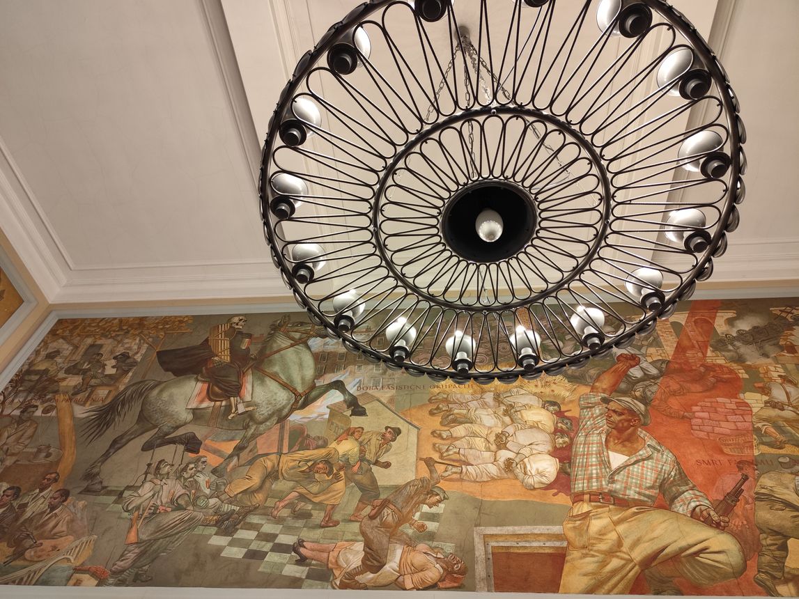 A fresco by the painter Tomaž Pengov in the municipal building portraying the evil of fascism and the struggle against it. ©Photo: Blaž Kosovel
