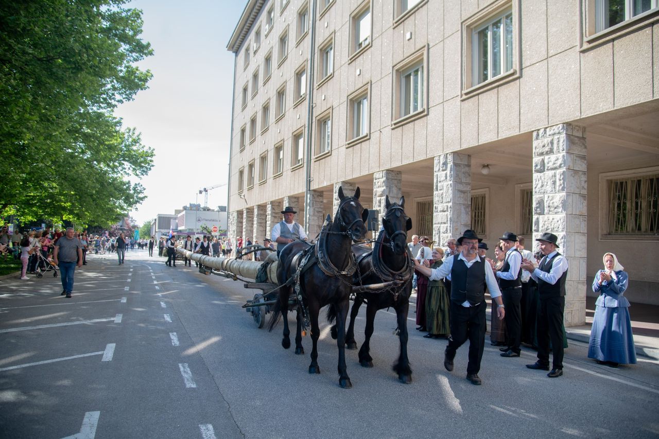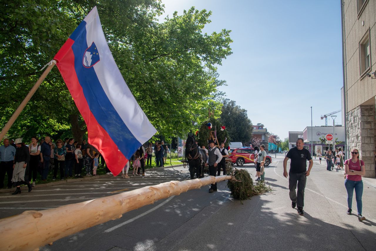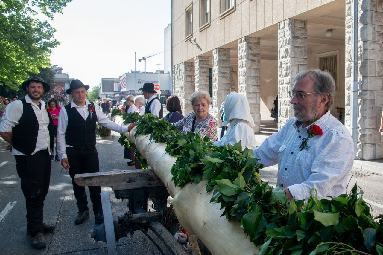Postavljanje mlaja - furenga v Novi Gorici, 2025. Foto: Turistično društvo Nova Gorica..