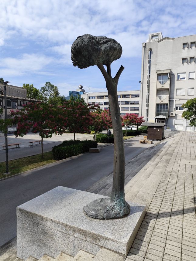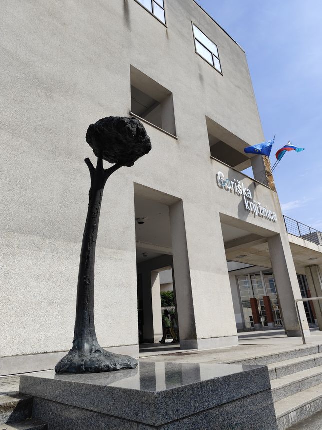 Tretja v nizu skulptur iz projekta skulpture v mestu, za katerega so pogodbo o sodelovanju sklenili HIT (kot financer), Ministrstvo za kulturo Republike Slovenije in novogoriška občina z namenom obogatiti urbani prostor s petimi pomembnimi kiparskimi stvaritvami je skulptura enega vodilnih slovenskih kiparjev, Jakova Brdarja, Bor na obali (iz cikla Pridiga ptičem), ki je leta 2001 dobila mesto pred Goriško knjižnico Franceta Bevka. Brdarjevo drevesce z visokim in vitkim steblom, na katero je sedel ptiček, postavljeno pred čisto Ravnikarjevo modernistično arhitekturo, nas osupne s svojo eleganco, subtilnostjo in hkrati močno izpovedno močjo.