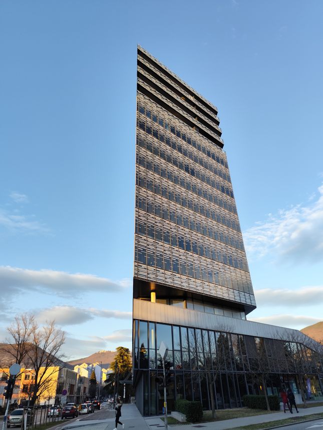 Eda Center je prva velika poslovna stavba v središču mesta, zgrajena v novem tisočletju. Stavba je okoli kipa Ikarus ustvarila trg, opremljen z velikimi stopnicami, primernimi za posedanje in dogodke. Ime stolpnice je posvečeno Rusjanovemu letalu Eda, katerega model si lahko ogledamo v avli zgradbe.