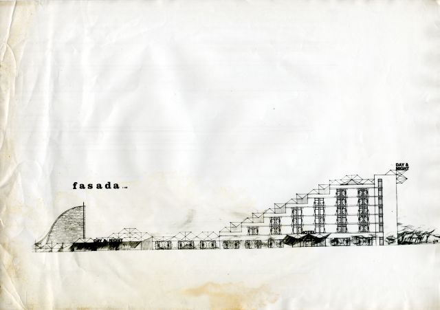 Objekt je gradilo podjetje Alpe-Adria iz Ljubljane, turistično-gostinsko podjetje za rekreacijo, izletništvo in letovanje delavcev. Nastali so v obdobju razcveta gospodarstva, poudarjanja pomena prostega časa, delavskega turizma, avantgarde. Objekt naj bi bil sprva namenjen za pivnico, vendar je kmalu prerasel v hotel z namenom rekreacije in letovanja delavcev. Po prvih načrtih naj bi poleg hotela postavili zabavišče, bazen, trgovine, vrtno kuhinjo, balinišče, plesišče, pasažo, sončno uro, fontano, ribnik, skalni vrt, otroško igrišče, sončni park, rožni vrt, mini šport, pizza-bife, skratka, celo vrsto vsebin, ki bi ponujale sprostitev in zabavo domačinom in tujim gostom.